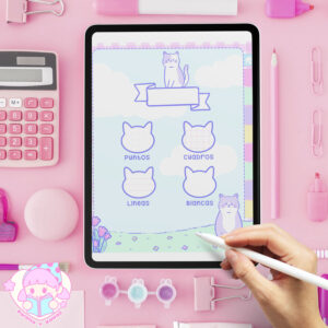 Cuaderno digital de Michi con diseño renovado. Diseño exclusivo de Paraiso Kawaii. Este cuaderno está en formato PDF, y puede usarse tanto en iOS como en Android mientras tengas una app compatible con la que puedas tomar notas. Perfecto para darle un toque kawaii a tus apuntes digitales. El cuaderno contiene: