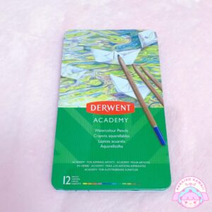 Set de 12 lapices acuarelables de la marca Derwent Academy. Esta linea, tiene una calidad muy superior a la linea escolar, con lápices de muy buena calidad pero a un precio menor que la linea para artistas profesionales.