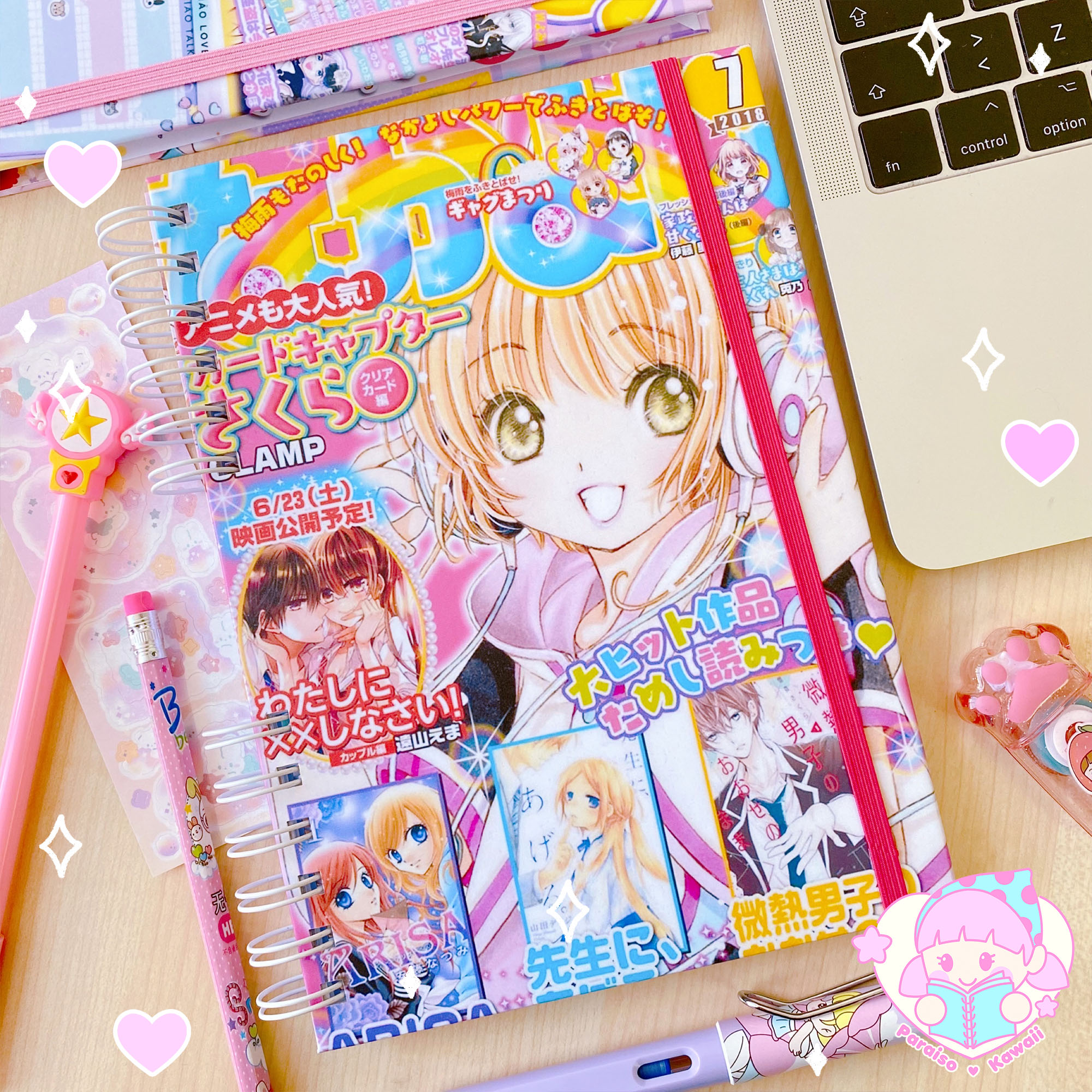 Libreta con portada de revista una revista de manga shoujo. Esta libreta esta hecha con impresiones de portadas de la revista. Dentro trae una hojita de la revista cada 20 hojas, por lo que puedes usarlas como separadores.