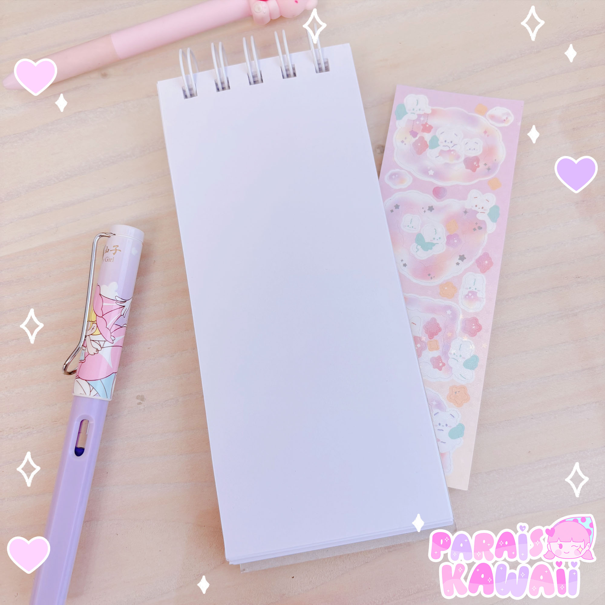 Mini croquera con hojas blancas perfecto para bocetos rápidos. Diseño exclusivo de Paraiso Kawaii. Características: