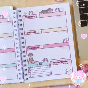 Puppy Planner Anual a pedido (1 semana de plazo de producción) sin fecha con diseño exclusivo de Paraiso Kawaii. Puedes pedir si quieres solo el planner o si quieres agregar una hoja de stickers mas un sobre para documentos.